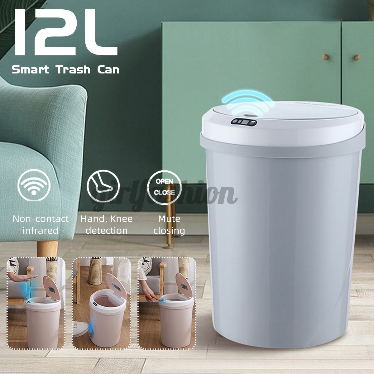 Jual 12l Touchless Auto Trash Can Smart Motion Sensor Home Automatic Waste Bins Online April 2021 Blibli